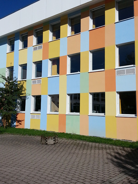Die Farbkonzeption wurde von Kunstlehrern der Schule erarbeitet. Einige Gedanken die mit diesem bildhaften Anstrich verknüpft sind: